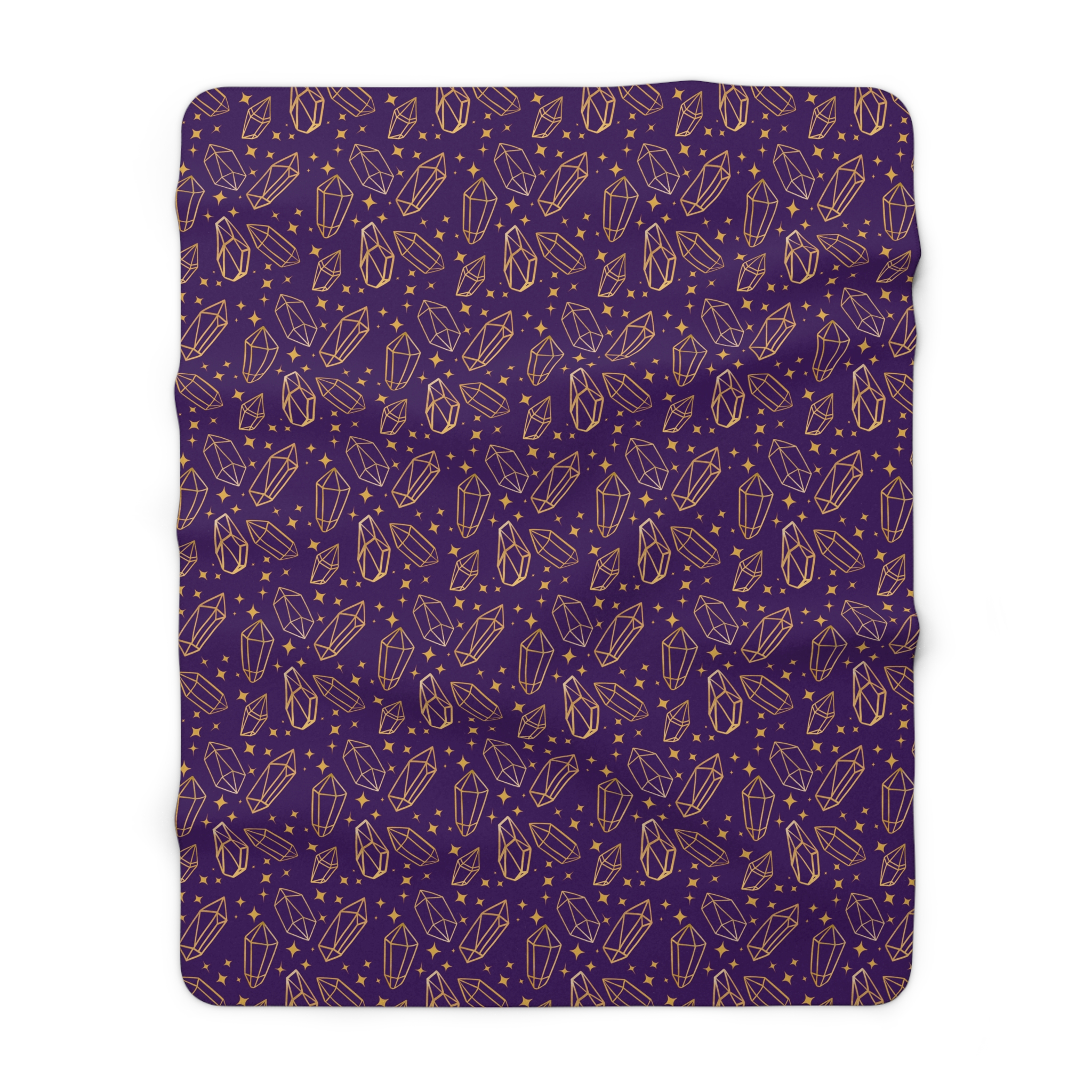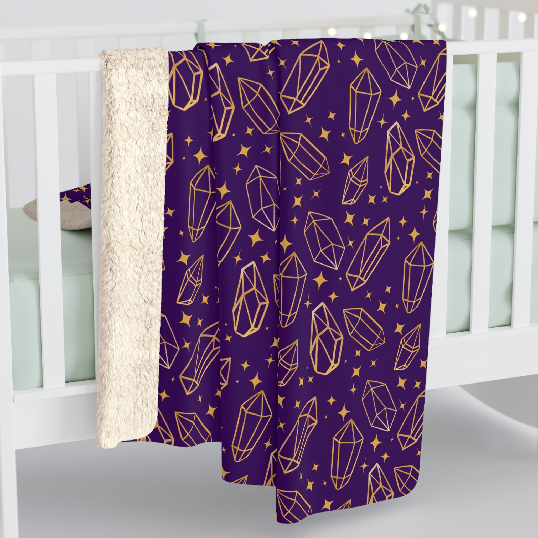Snuggle up and get cozy all year long with this super cute purple sherpa fleece blanket with a golden crystals and sparkle design. This blanket exudes luxury and warmth, perfect for cozy nights in or adding a touch of elegance to your home decor. The perfect gift for anyone who loves crystals, magic, energy healing, cute designs and so much more!